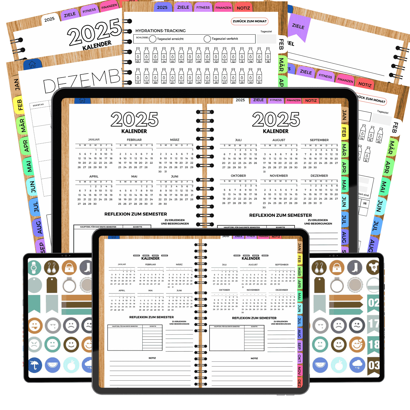 Von süßen Icons bis zu dekorativen Elementen – diese vielseitigen Ressourcen verleihen deinem digitalen Planer Charme und Individualität (Kalenderdaten, Etiketten, Formen, Haftnotizen, Washi-Tape, Aquarellformen).