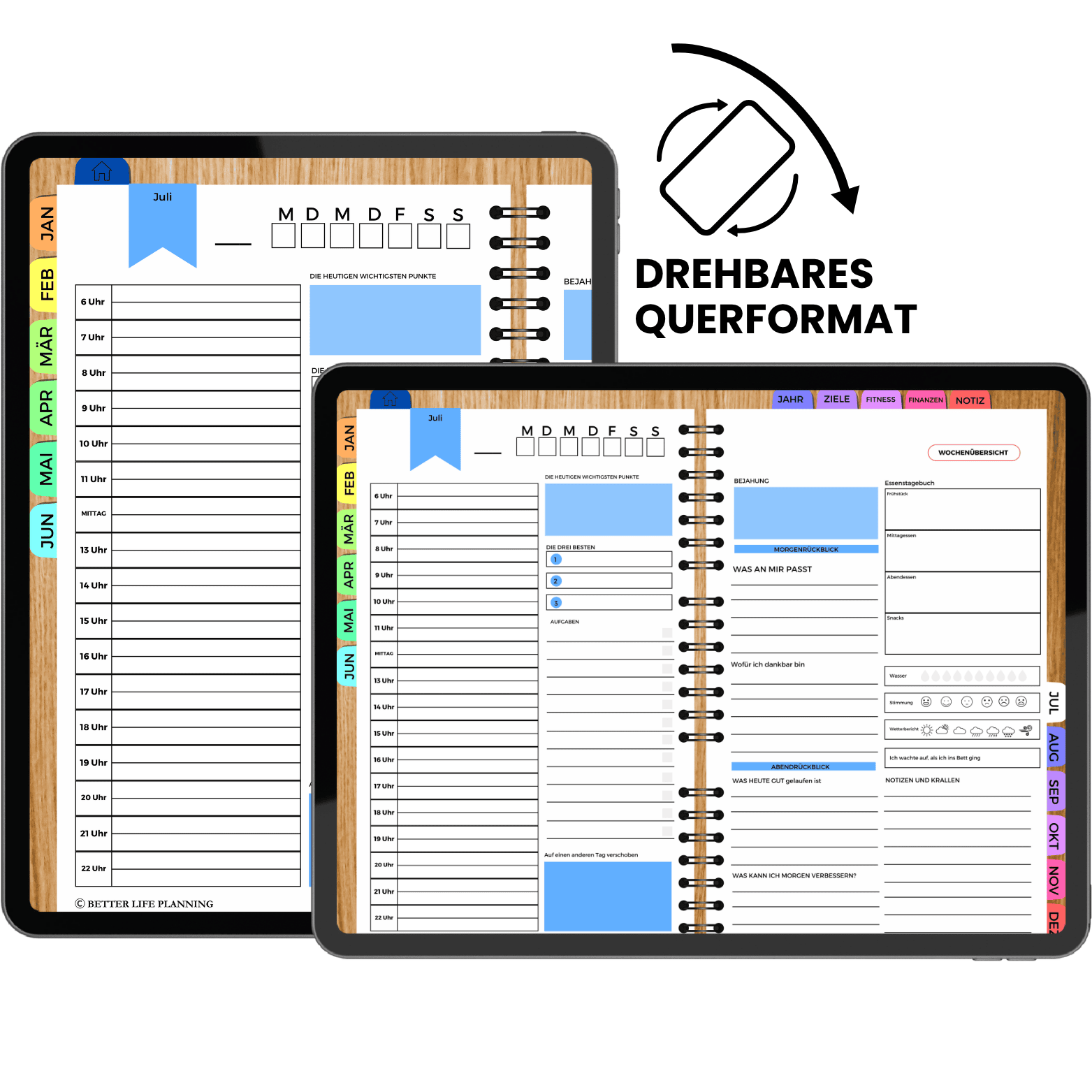 Planen Sie Ihre Monate, Tage und Ziele ganz einfach.